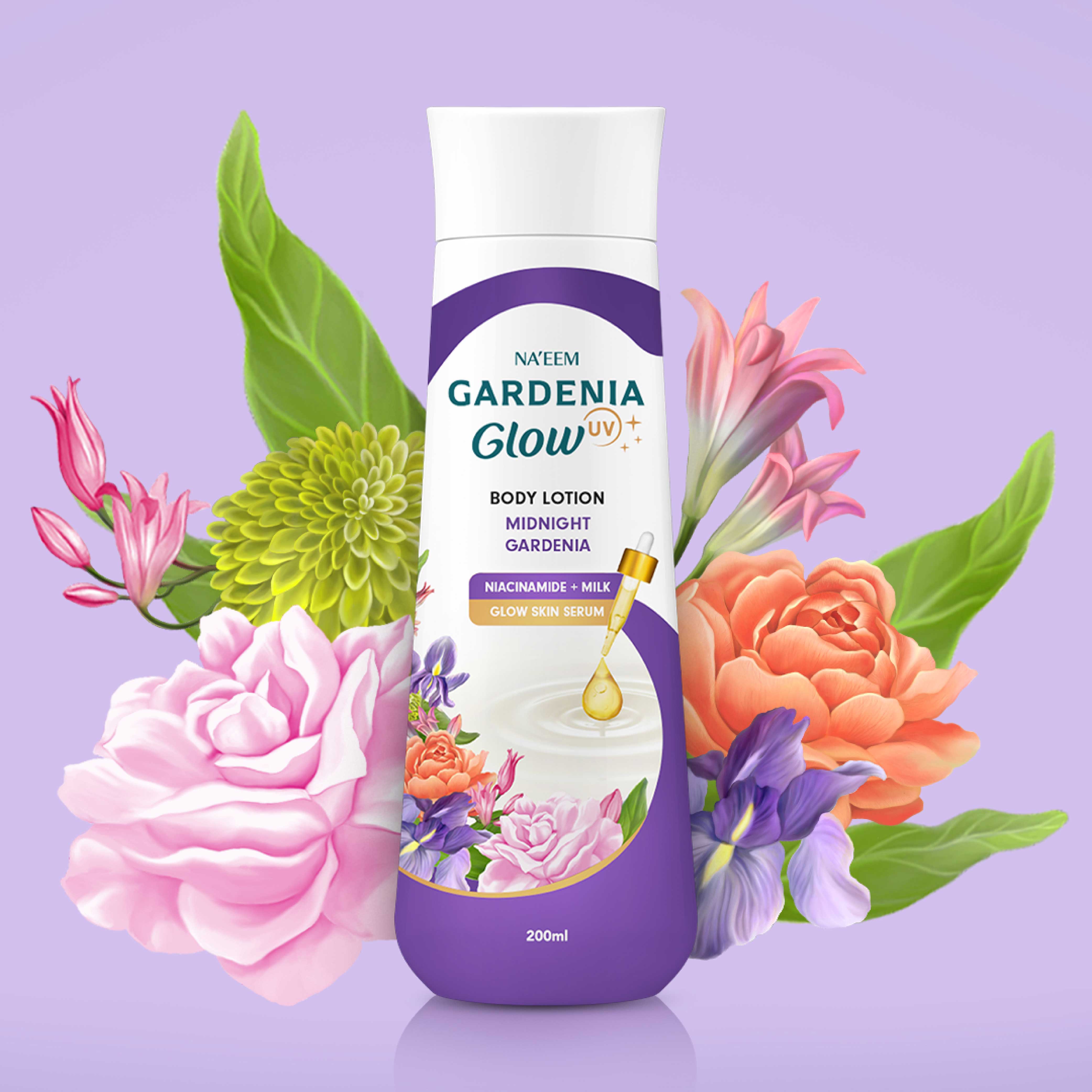 Introducing Gardenia Glow by NA'EEM: The Ultimate Floral Skin Serum Elevate your skincare routine with Gardenia Glow, the latest innovation from NA'EEM. This luxurious body lotion is infused with niacinamide and milk, designed to leave your skin feeling refreshed, fragrant, and glowing. As part of our new Gardenia by NA'EEM sub-brand, this lotion not only pampers your skin but also delivers powerful floral and fragrant benefits.